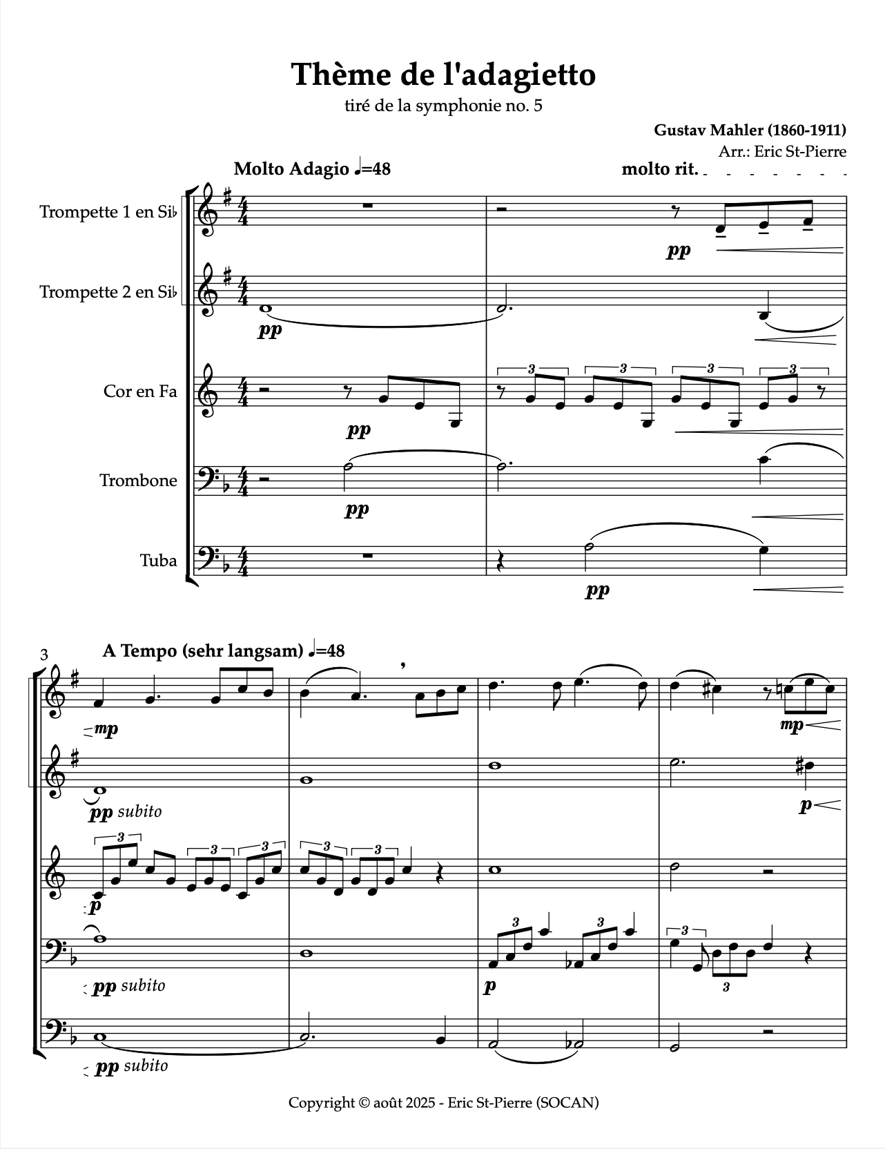 Un arrangement pour quintette de cuivres du célèbre adagietto de la 5e symphonie de Mahler.