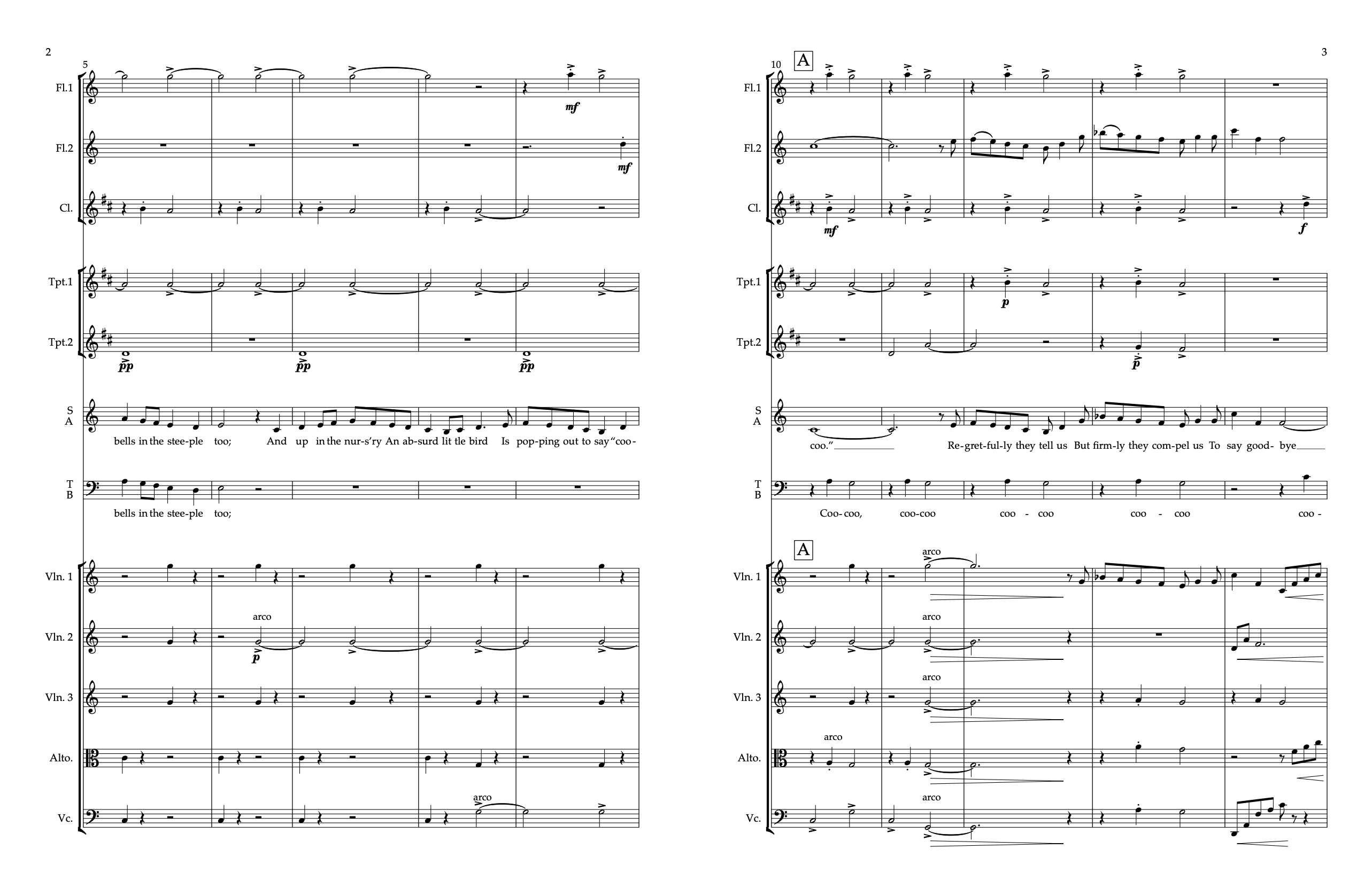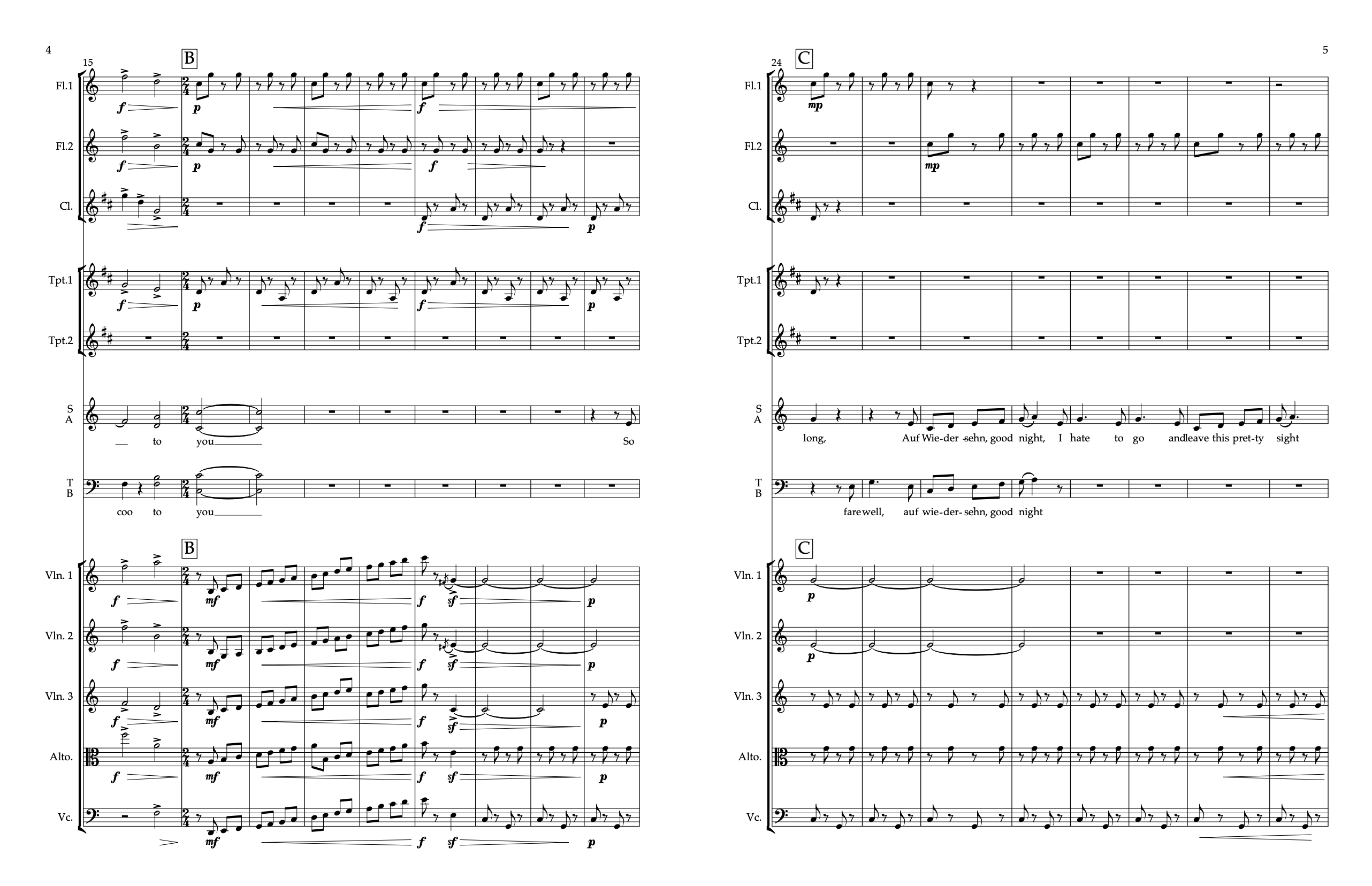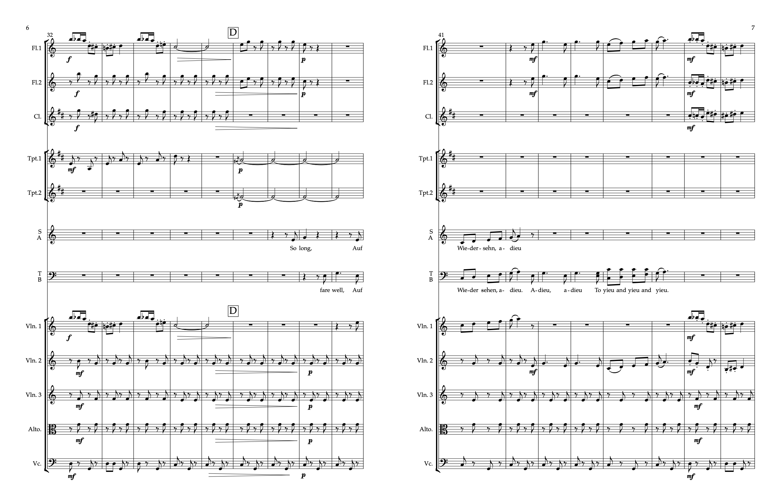 violons, altos, violoncelles, contrebasse, flûtes, clarinettes, trompettes